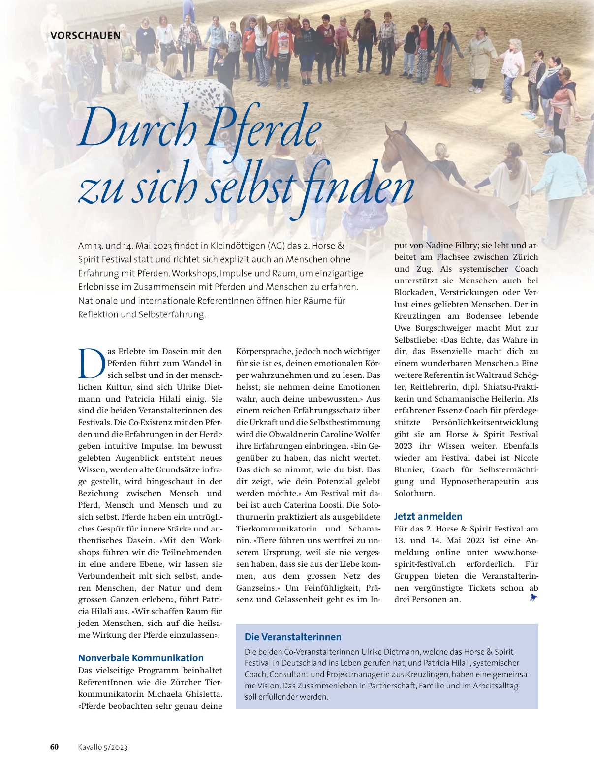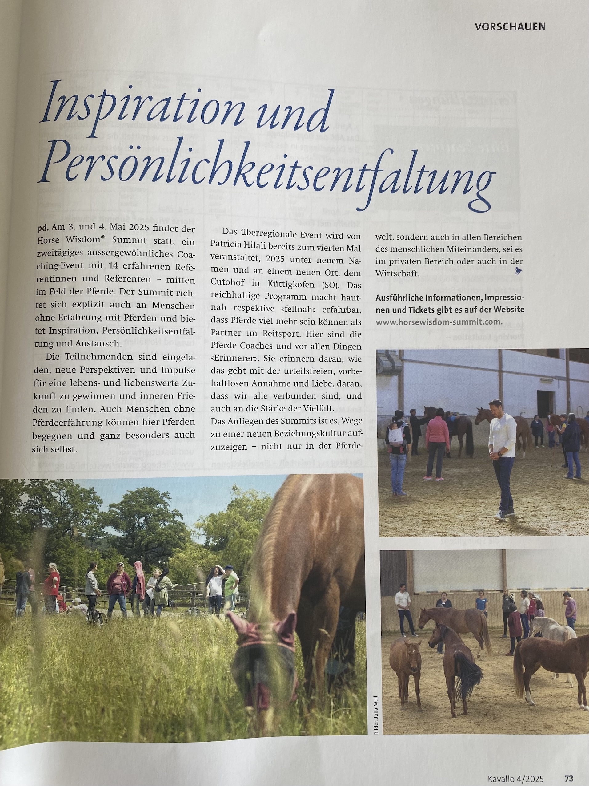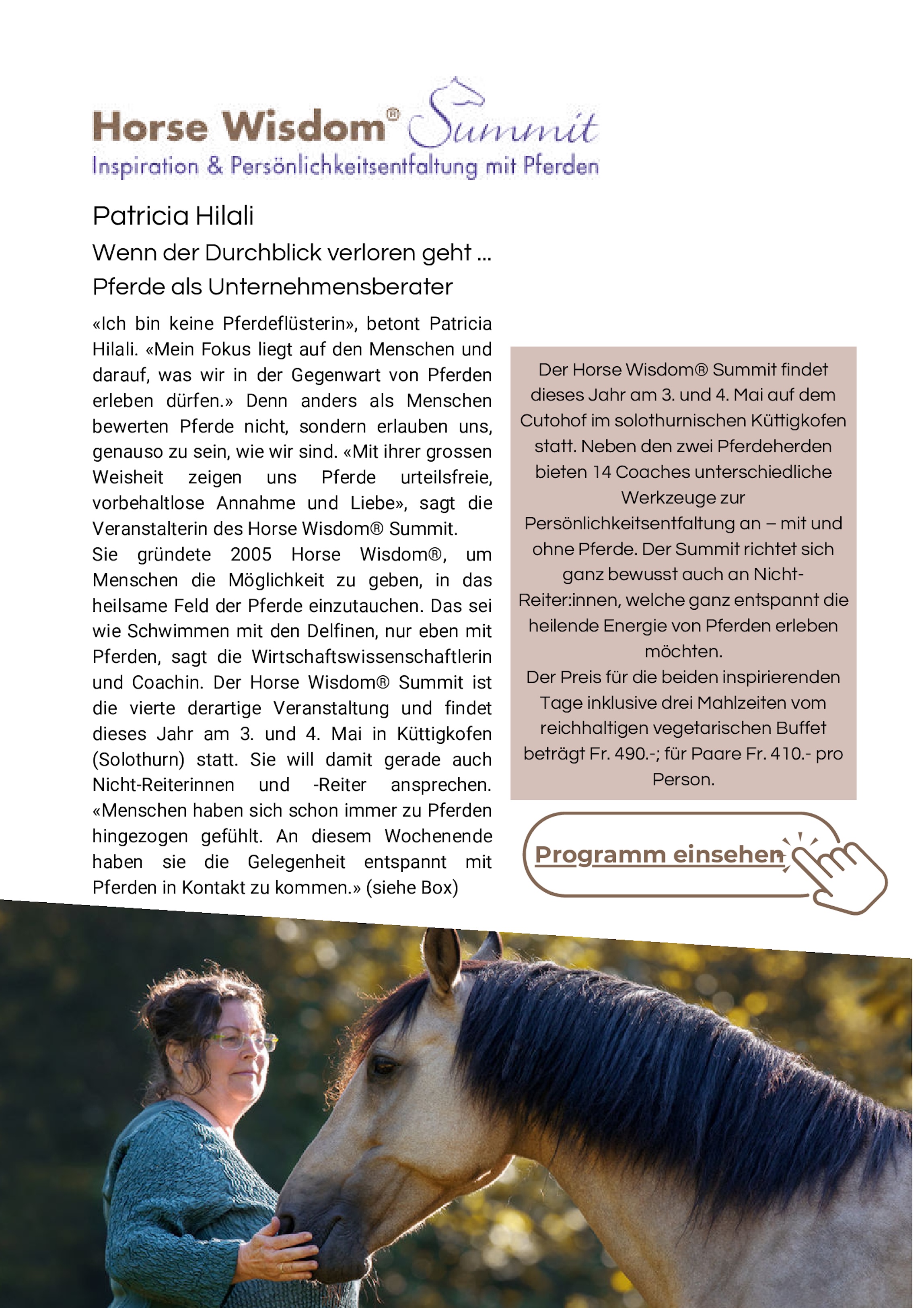 In diesem Bereich findest Du - übersichtlich gebündelt - eine Sammlung von Artikeln in Magazinen und der Tagespresse und Medien, die über Horse Wisdom®, Patricia als Quelle diese Arbeit und den Horse Wisdom® Summit berichtet haben.